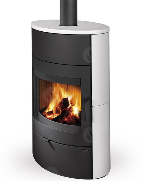 Le BURGOS est disponible en finition tout acier noir, avec en option un habillage en pierre serpentine ou en céramique dans 16 coloris.