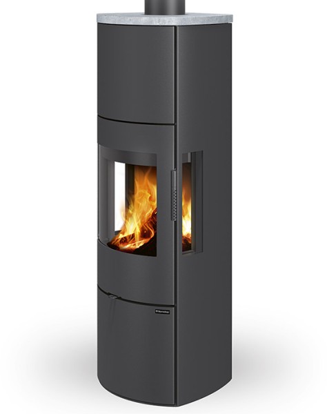 Le modèle SEIDO, dans sa version de base, propose l’option d’ajouter des pierres d’accumulation dans la partie supérieure du poêle. Ces pierres retiennent la chaleur même après l’extinction du feu, offrant ainsi un confort thermique accru et une meilleure efficacité de chauffage.