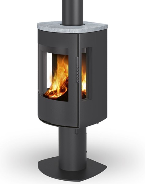 Ce modèle est idéal pour ceux qui recherchent qualité et fonctionnalité dans un design simple. La pierre serpentine naturelle, les carreaux de céramique ou la tôle noire durable sont disponibles comme revêtement.